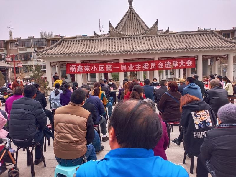 为进一步加强对物业小区的管理和服务,维护小区楼院业主的合法权益,促进和谐社区建设,4月17日晚上7点,汉唐街北社区在福鑫苑小区隆重召开了福鑫苑小区第一届业主委员会选举大会,大会由社区领导、福鑫苑物业项目部负责人、福鑫苑全体业主、社区业委会筹备领导小组、公园路居民服务站工作人员参加了会议。