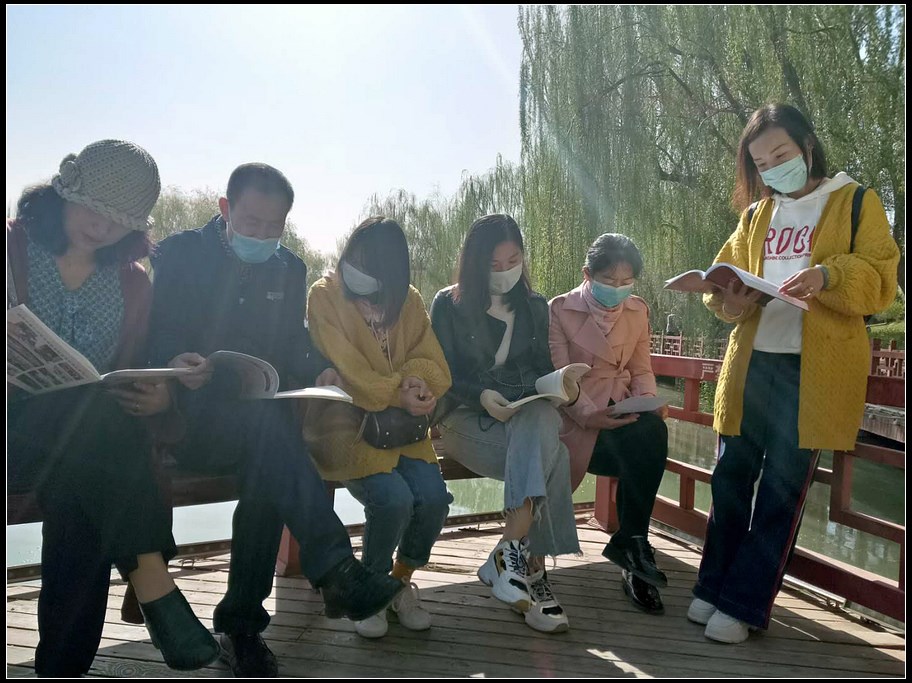 活动中主持人阐述了读书日的由来及活动意义,伴随着婉转悠扬的音乐,大家三三两两的围在一起,聚精会神,领会知识的魅力,既有《活着为了讲述》《遇见未知的自己》《灯塔》的温情流露,也有《国史讲话》《乡土中国》的社会教育,还有《我的零点时刻》等的人生感悟,诵读之后大家还互相分享自己的阅读感悟,在温馨安静的环境里共享阅读的快乐。