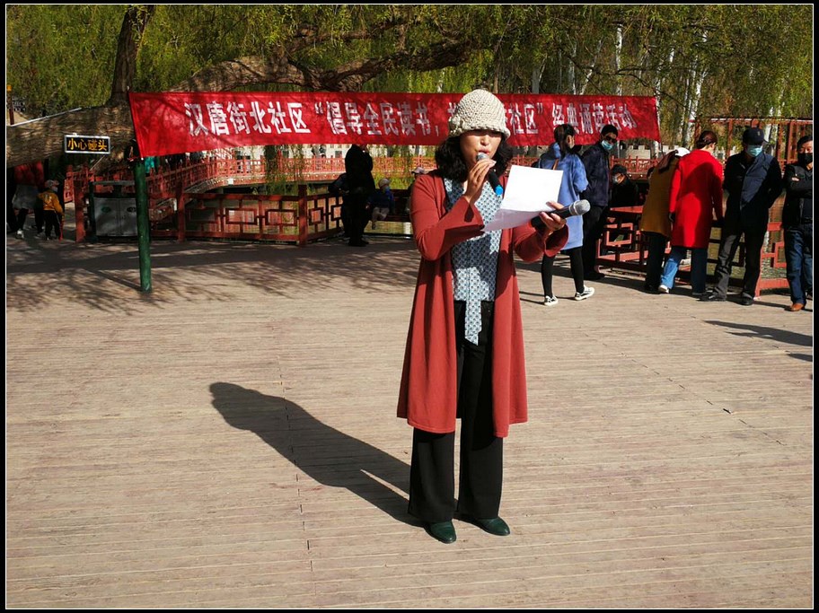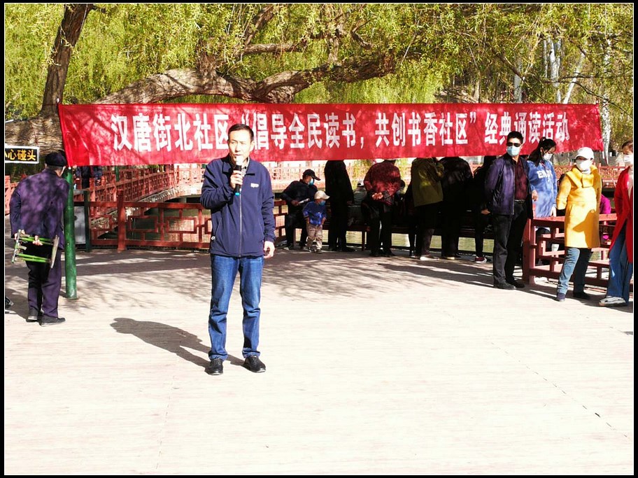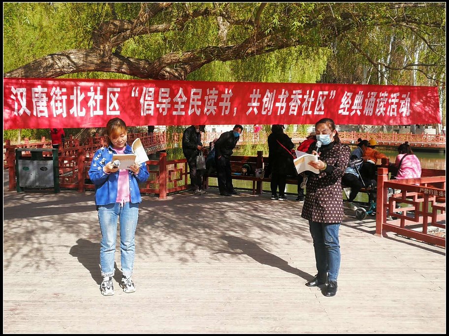 阅读点亮人生,书香润泽心灵。今天是第24个世界读书日,为了倡导多读书、读好书的文明风尚,营造全民读书、终身学习的良好社会氛围,创建学习型书香社区,4月23日上午,汉唐街北社区组织社区全体干部职工在西汉酒泉胜迹开展了以“倡导全民读书,共创书香社区”为主题的经典诵读活动。