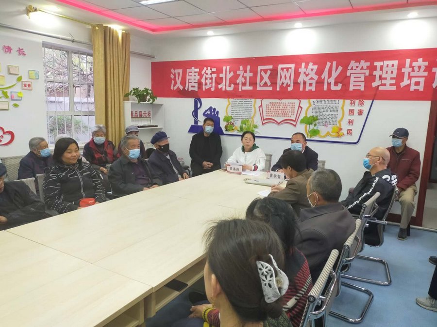 肃州区汉唐街北社区位于老城区东北角,属城乡结合部,所辖面积约5平方公里,东至酒航路、西至东环北路、南至公园路、北至水磨沟三组,常住居民8574户,23877人,有辖区单位20个,个体门店337家。辖区有小区楼院36个,其中物管小区8个。因辖区散居楼院多,物管率低,使社区(二级网格)日常管理服务力量不足的问题非常突出。楼院网格党支部对服务站统领指挥,协调调度作用缺位,工作中的两张皮现象明显。为切实补足工作中的短板,社区建立健全党建网格化管理模式,细化网格单元,完善党组织设置,落实党员干部、联系服务队员工作责任,整合各类服务资源,建立起“纵横到边、覆盖全面、活动开放、功能互补”的基层组织管理服务体系,为居民群众提供多元化、精细化、个性化的服务。