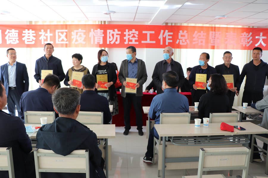 自新冠肺炎疫情防控工作启动以来,同德巷社区严格按照区疫情工作领导小组部署要求,高度重视,全力谋划部署、狠抓工作落实,采取“严阵以待、严防死守、严格筛查、严密管控”的“四严”工作法,全力做好疫情防控工作。4月29日上午,同德巷社区召开疫情防控工作阶段性总结推进暨表彰大会,会议对社区疫情防控工作中取得的阶段性成果及经验进行了小结,对疫情防控工作给予社区物资支持、表现突出的六个单位、30多名联防单位职工、在职党员、居民党员以及社区工作者表彰授予先进单位和先进个人荣誉称号,并颁发奖牌和荣誉证。当前,疫情防控形势依然严峻,社区作为抗击疫情、联防联控、群防群控的主战场,是阻断疫情扩散蔓延的最有效防线。下一步,同德巷社区将继续增强风险忧患意识,凝聚各方力量,健全网格化管理,进一步把社区防控防线织密扎牢,使之真正成为打赢疫情防控总体战和阻击战的最坚强、最牢靠的堡垒。