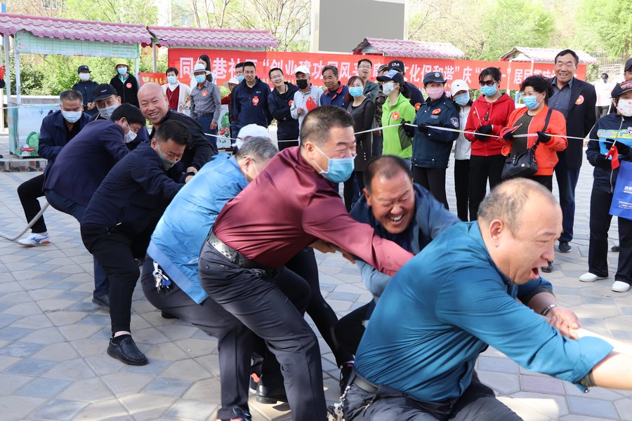 为弘扬劳动精神、劳模精神、工匠精神,在疫情防控非常时期奏响劳动最光荣、劳动最崇高、劳动最美丽的时代主旋律,激发广大职工在推动企业复工复产、服务经济社会发展中充分发挥主力军作用。4月30日,肃州区同德巷社区举办“创业建功展风采,康乐文化促和谐”为主题的庆“五一”趣味运动会。活动中,社区按参与活动对象分为退役军人代表队、辖区单位代表队等6支参赛队伍,共200余人参加,设置了一百二十个奖项。通过团队协作完成了拔河、投沙包、反向运动、横向龙舟等易于大众参与、危险性较低的趣味文体活动项目。