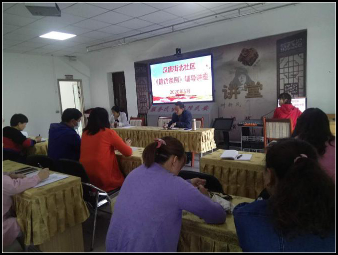为进一步规范信访工作行为,切实增强居民依法信访观念,引导居民依法、理性、有序、文明信访,营造和谐稳定的社会环境。近日,酒泉市肃州区汉唐街北社区召开“两会”期间《信访条例》辅导讲座。
