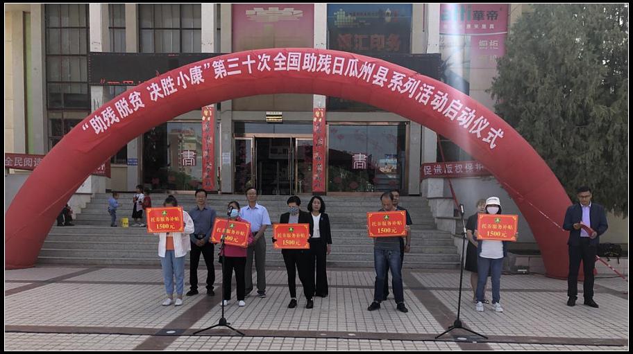 自5月份开始,我会将采取县上集中,各乡镇分散组织相结合的方式开展系列助残服务活动,投入资金100余万元,组织实施扶残助残18项系列活动,惠及全县近2000名残疾人。其中组织慰问残疾人困难家庭15户,捐赠轮椅21辆、爱心书包70个、残疾人两项补贴12.2万元、组织酒泉市中医院和瓜州县医评残专家为残疾人下乡办证300余人。下一步将持续开展残疾人宣传文化“五个一”项目(为项目实施户订阅一年的《中国残疾人》、看一次电影、游一次园、参观一次展览、参加一次文化活动)、开展康复服务指导,为困难残疾学生发放助学补助等助残系列活动。