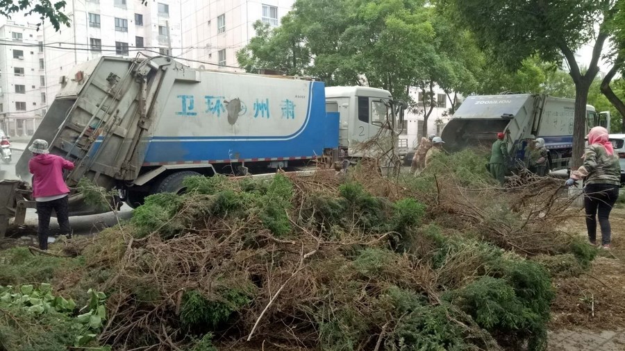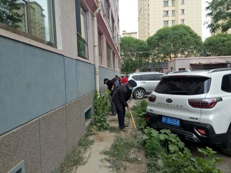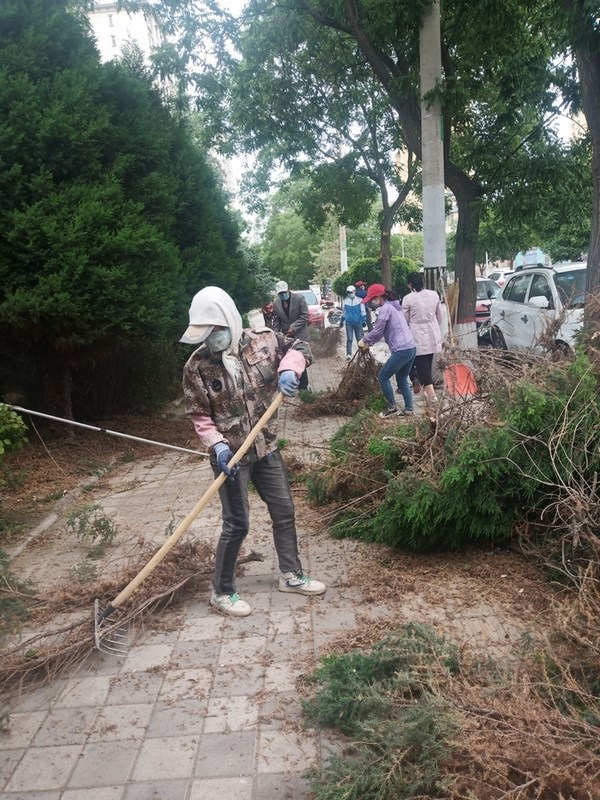 在整治行动中,网格员和志愿者都表现积极、团结一致,充分发扬了不怕脏、不怕苦的志愿精神和保护环境的强烈意识,带着镰刀、剪子、铁锹等工具,重点整治小区楼院、房前屋后、绿化带区域内的杂草、垃圾。一是对北后街46号墙角的芦苇和华宝花园院内绿化带及空闲地的杂草进行铲除;二是网格员及志愿者联合巨龙物业公司共同修剪了巨龙御园南门绿化带的枯枝树木,彻底铲除了绿地内的落叶及杂草;三是对清理出的枯枝败叶、垃圾杂物,社区城管办及时联系环卫局垃圾压缩车进行了清运,共清运5吨。