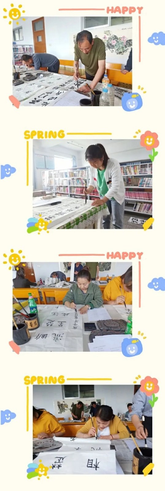 最后一项进行的毛笔字比赛。端庄秀丽的楷书、轻重有致的隶书、行云流水的草书、龙凤凤舞的行书……,教师们在一张张之上尽情挥洒,展现自己的独特风采。