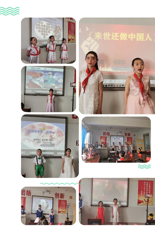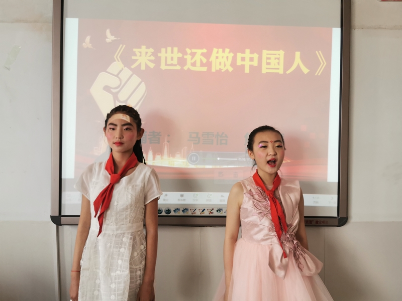六年级学生朗诵的《来世还做中国人》他们叙事式的朗诵告诉我们逆行者的无怨无悔和英雄气概,他们的精神是每一位少先队员的努力方向,英雄的品质将如雷灌顶地印刻在少年心中,永不磨灭,照亮少年前行的路。