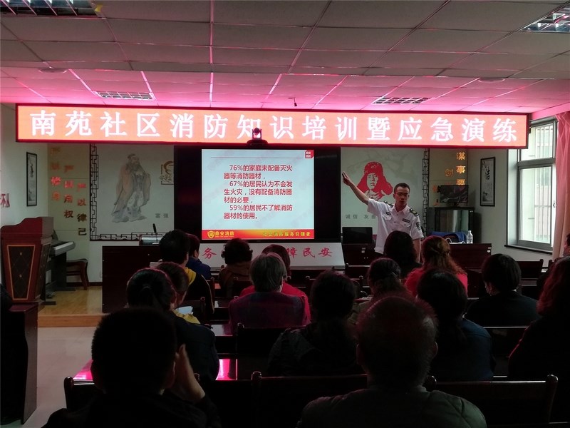 为进一步加强辖区居民消防安全意识,提高居民对突发事件的应急应变能力,营造安全、稳定、和谐的社区环境,5月29日,南苑社区邀请鼎安消防知识培训中心老师开展消防安全知识讲座及应急演练。社区网格员、12个小区楼院楼长、单元长、平安志愿者以及物业公司工作人员等60余人参加培训。