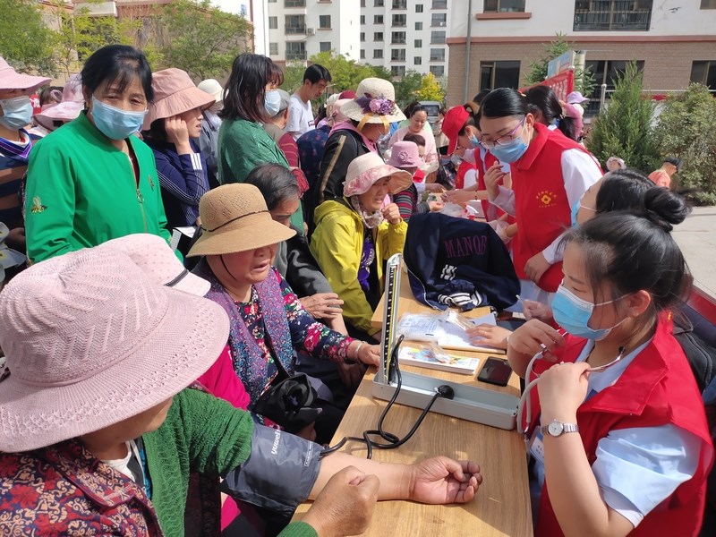 活动在舞蹈《开门红》中拉开序幕,阳光健身艺术团的志愿者们演绎的独唱、舞蹈等节目将现场气氛一次次推向高潮,台下不时传来观众阵阵掌声。随后,酒泉市妇科医院医务人员为小区居民量血压、测血糖,同时为群众讲解演示急救知识。洪枫诊所、洁雅口腔的志愿者们讲解如何注意口腔卫生,按摩、检查耳鼻口腔,焦点美容美发、杨晓荣美妆的志愿者为居民免费理发、居民也不自觉得排起了长队。