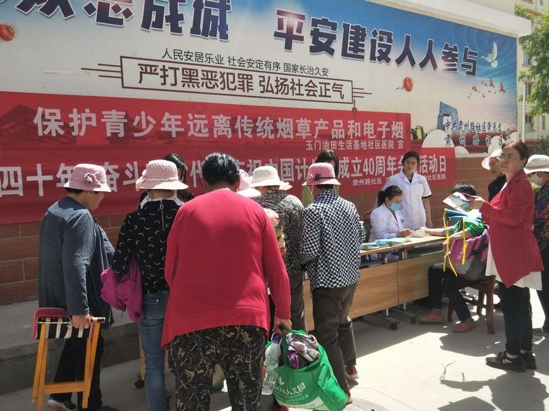 5月28日,肃州路社区计生协联合玉门油田生活基地社区医院开展以“壮阔四十年 奋斗新时代”为主题的宣传服务活动。社区计生协志愿者、特殊家庭、计生家庭代表、二级网格共50人,参加了本次活动。