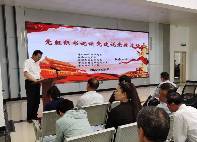 6月3日,玉门市新市区街道迎宾路社区楼院党支部联合玉门市非公经济组织和社会组织党工委,在迎宾路社区党群服务中心开展非公企业和社会组织党组织“讲党建、说党建,谈感悟、促发展”联合主题党日活动。