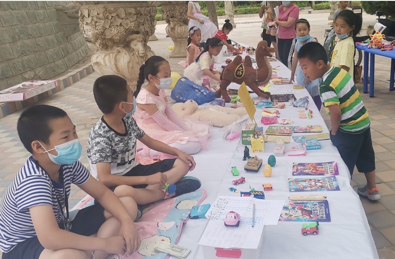 孩子们都按捺不住激动的心情,早早来到了活动现场,在到场家长们的热心帮忙下,活动现场很快准备就绪,各位“小店主”也很快开始忙碌起来,大家选好各自的“有利位置”开始用心打理起来,孩子们便各尽其能使出浑身解数“招揽客户”。