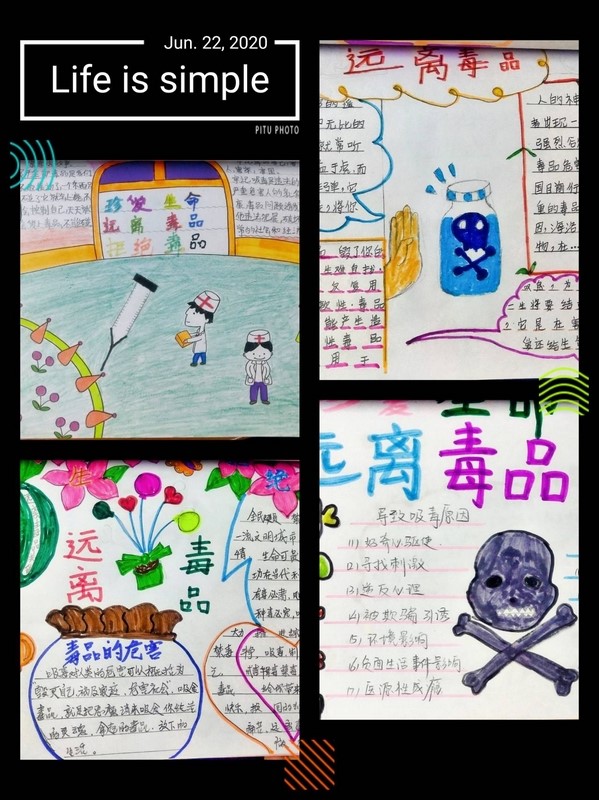 学校开展了主题手抄报设计制作活动,全体少先队员积极参与其中,通过图文并茂的形式了解相关知识,形成禁毒意识,取得了学习、宣传的效果。