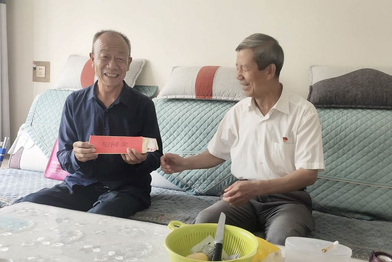 每到一处,社区主要负责人都详细询问生活困难党员以及老党员的生活状况,鼓励他们要乐观生活,保重身体。同时,社区主要领导和各支部书记还为他们送去了慰问金,为他们送上了最真挚的节日祝福。