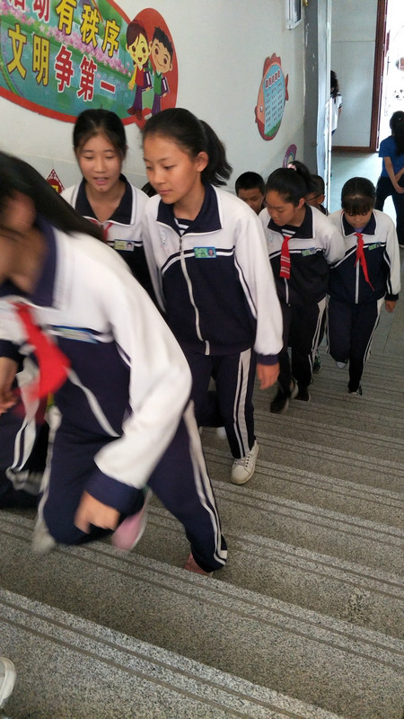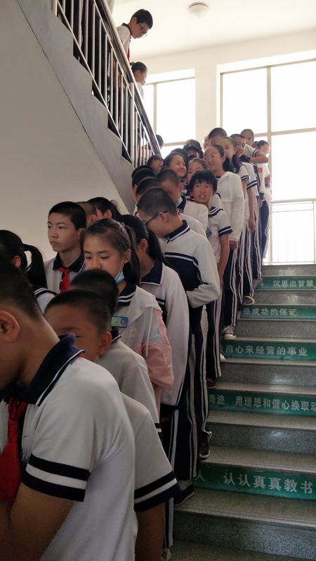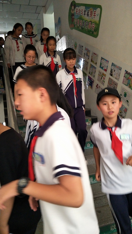 演练开始,当广播中响起警报时,全体教师严格按照安全逃生应急疏散演练活动应急预案,进入各自岗位进行及时疏散,各班学生在老师指挥下按照指定的安全出口,有序地离开教室,紧急撤离到安全地带。整个过程紧张而有序.一千九百多名学生和老师全部安全、迅速地到达集合地点,收到了预期效果。