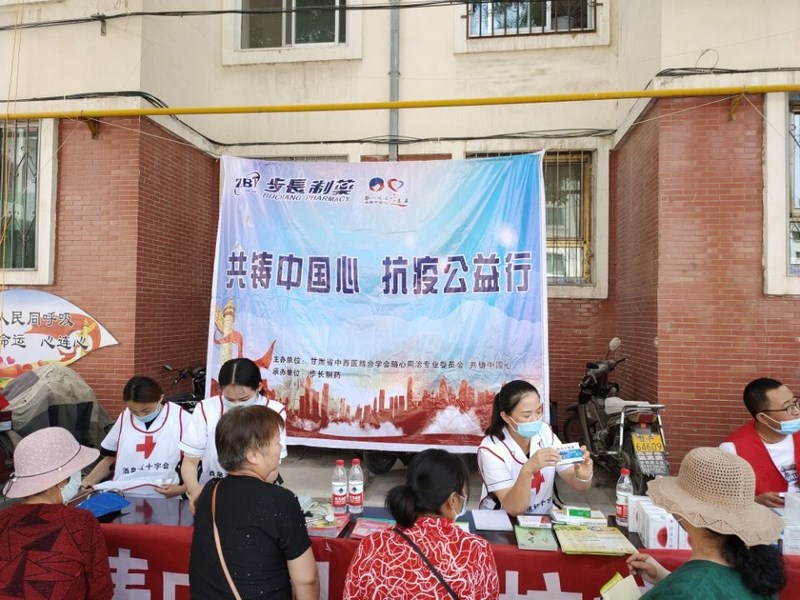 7月10日下午,东南街社区卫生服务中心联合步长制药在我社区开展了“共铸中国心•抗疫公益行”关爱活动,为抗疫一线的志愿者义诊、派送药品。