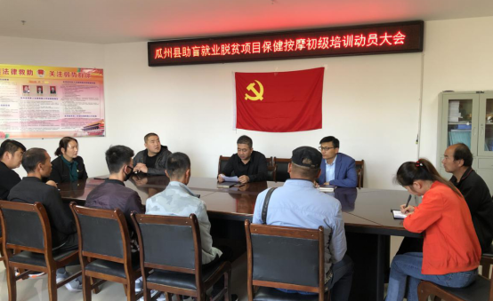 为了让参加培训的视障人士能够更好更快的融入学习生活,在培训期间提高他们的职业技能,拓宽就业途径。我会在培训前举办了助盲就业脱贫项目保健按摩初级培训动员大会,县残联党支部书记、理事长武生祥在动员会上指出,一直以来,县委、县政府高度关注残疾人群众的的生存、就学和就业情况,出台了一系列帮扶残疾人的优惠政策和举措,贫困残疾人的生活状况得到了改善,而解决残疾人的根本出路在于就业。他勉励广大残疾人朋友自信、自强、自立,认真学习培训技能,学会一技之长,用自己的双手创造美好的未来。
