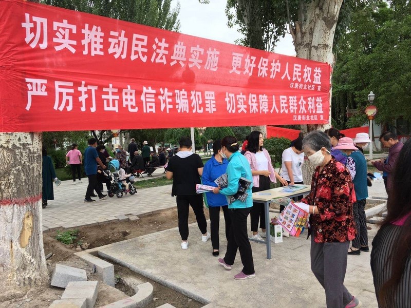 为进一步让辖区居民了解《中华人民共和国民法典》,提升对《民法典》的认识度和知晓率,7月23日,汉唐街北社区在辖区民族团结广场积极组织开展了“民法典”宣传活动。