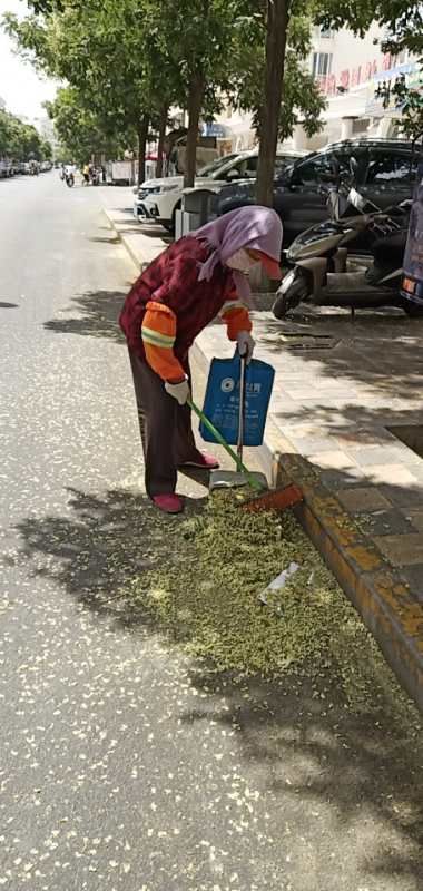 今年以来,因持续性干旱天气及节气变化影响,当前槐花飘落现象严重,影响了辖区市容市貌,对居民出行也存在一定安全隐患。东关苑社区针对这一季节性问题,开展好“一项”主题党日活动,落实好“四项”长效工作机制,全力清扫飘落槐花,确保辖区干净整洁。