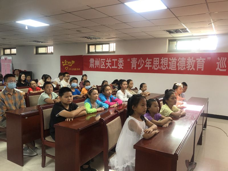 为进一步加强青少年思想道德建设,帮助广大青少年树立正确的人生观和高尚的道德情操。8月14日上午,肃州区关工委青少年思想道德教育巡讲走进东关苑社区多彩讲堂,肃州区丰乐中心小学权兴祥老师(全国优秀教师、全国中小学优秀班主任荣誉称号获得者)为辖区青少年上了一堂精彩的理论宣讲课。区关工委常务副主任王建文,区关工委副主任雷君邦,区委老干部局副局长赵建萍,东关苑社区领导班子成员、全体党员干部、辖区青少年及其家长、志愿者共80余人参加了此次讲座。
