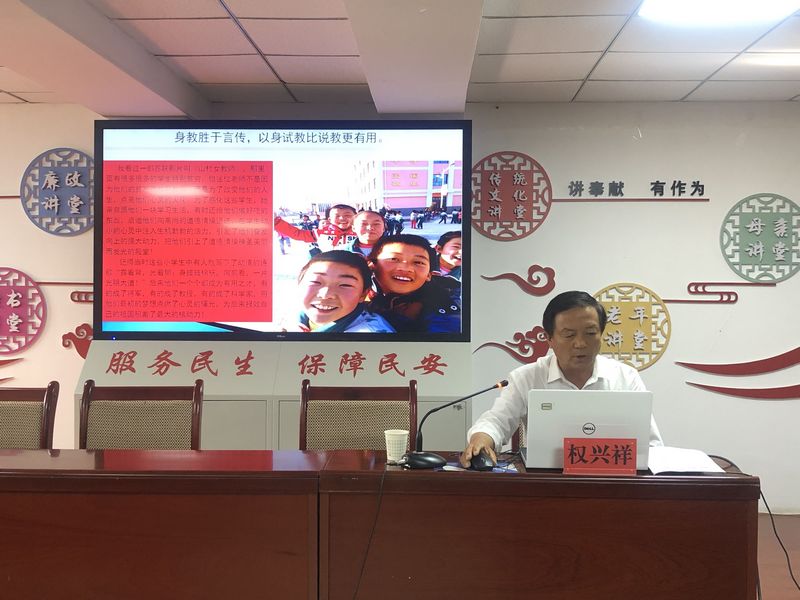 授课中,权兴祥老师以“德为种子 情做土壤 以情育德 育人重德——社会主义核心价值观与中小学生德育教育”为主题,从“抓常规,促养成,保证德育领先地位”、“坚持正面教育为主,潜心挖掘学生的闪光点”以及“立德树人、楷为人师,率先垂范、身先士卒”等方面,讲述了青少年德育教育的重要性,并就社会主义核心价值观的内涵、积极培育和践行社会主义核心价值观等内容进行了重点讲解。