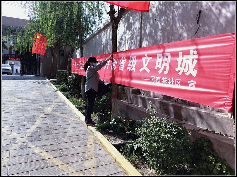 此次氛围营造以“中国红”为主题,在社区党群服务中心、各住宅小区门口、临街商铺等悬挂了五星红旗,增添一抹抹欢快喜庆的颜色。一番装饰后,一面面鲜艳的五星红旗迎风飘扬,呈现出一道道亮丽的风景,让居民们深深感受到了国庆71周年华诞的喜悦氛围。同时,社区工作人员对沿街商铺和居民进行了创建文明城市的宣传,让居民加强创城文明意识,共同维护社区形象。