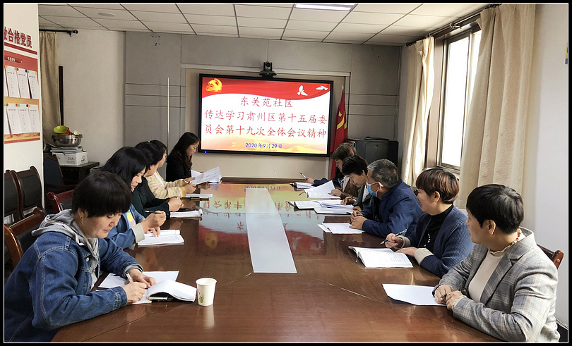 9月29日下午,东关苑社区召开传达学习肃州区第十五届委员会第十九次全会精神会议,社区机关全体干部、各网格服务站站长参加了会议。