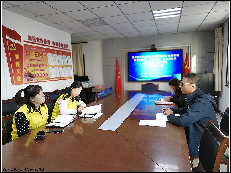 中国甘肃在线肃州讯 10月13日上午,酒泉市肃州区创建全国社区治理和服务创新实验区暨2020年“三社联动”东关苑社区(扶老服务)试点项目第三次联席会议在东关苑社区会议室顺利召开。东关苑社区副主任李明霞、东关苑社区服务中心主任刘炳洋、东关苑社区会计汪瑞文、肃州区和天社会工作服务中心主任杨燕及项目执行社工陈兰等共6人参加了本次会议,会议由东关苑社区服务中心主任刘炳洋主持。