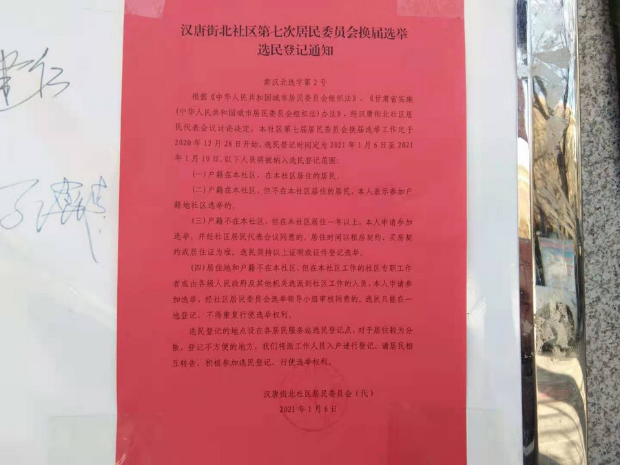 为切实做好社区居委会换届选举工作,连日来,汉唐街北社区精心筹备,采取多种措施,严格按照公开、公平、公正的原则,做好选民登记工作,确保换届工作紧扣时间点,实现“不漏登、不错登、不重登”的目标,保障每一位选民的选举权利。