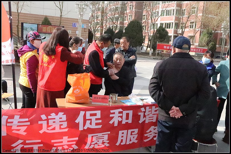 3月5日下午,肃州区东北街街道同德巷社区开展了“志愿服务献真情·爱心传递促和谐”文明行志愿服务活动启动仪式,市区退役军人事务局、市博物馆、区市场监管局、区残联等市区五联双报到单位、酒泉“和天”养老服务中心、944医院、酒泉市医院、市骨科医院、市仁和医院、西北街卫生服务中心、同德巷社区“红色精神传承”等10支志愿服务队、社区全体党员干部、群众代表等260多名志愿者们走进社区,迎着温暖春风,携手争做雷锋式的好人。