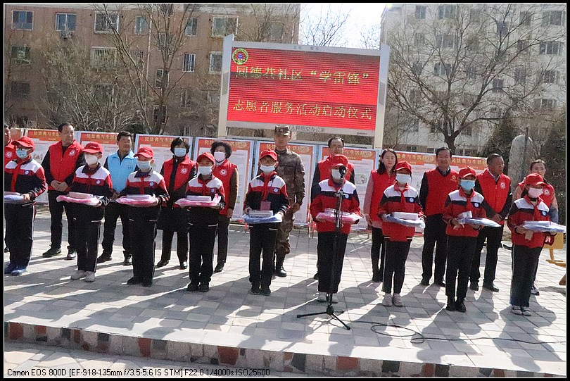 活动现场,为社区10支志愿服务队伍进行了授旗仪式,重温《志愿者誓词》,合唱《学习雷锋好榜样》歌曲。对酒泉市康盛小学少先队员代表进行爱心捐助,送上生活衣物和学习用品。