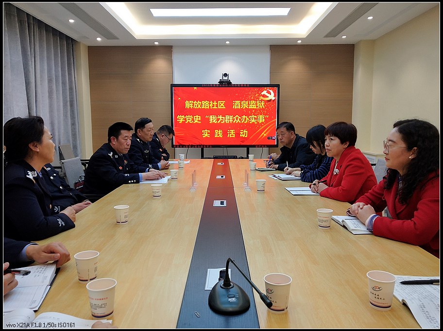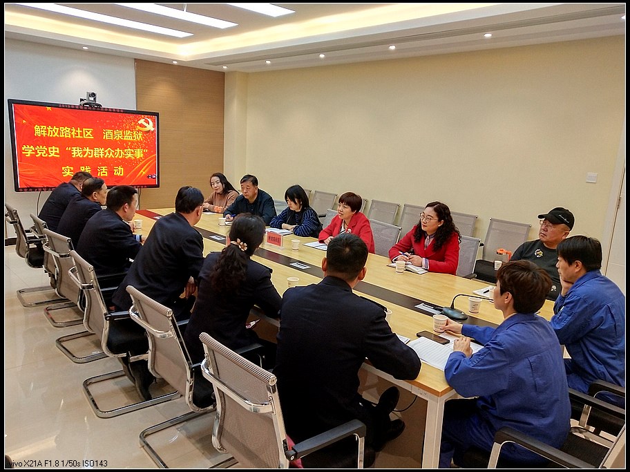 座谈会上,社区党委书记与酒泉监狱各党支部领导就共驻共建工作进行了座谈交流,酒泉监狱党支部就如何更好地开展共驻共建工作畅所欲言,并表示,在建党100周年之际,要与社区一同开展丰富的学党史“我为群众办实事”实践活动,共建共创和谐社区。