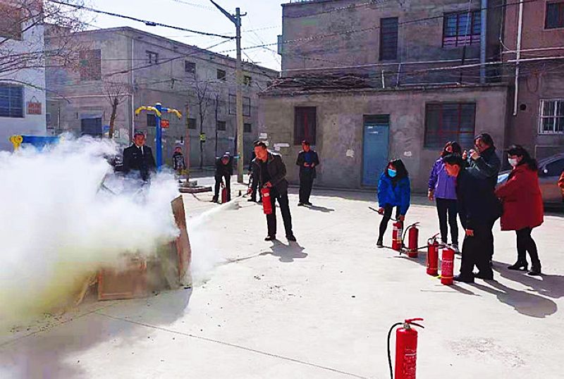 随后,为将消防理论融于实践,参加培训的干部及居民在工作人员的引领下开展灭火演练,由工作人员介绍消防器材的使用方法,并指导居民上前实际操作。演练现场,规范、准确适用干粉灭火器,整个过程紧张、流畅。