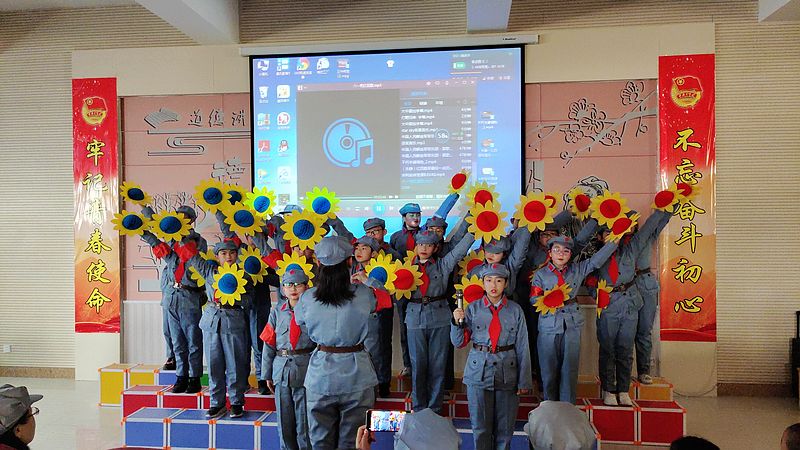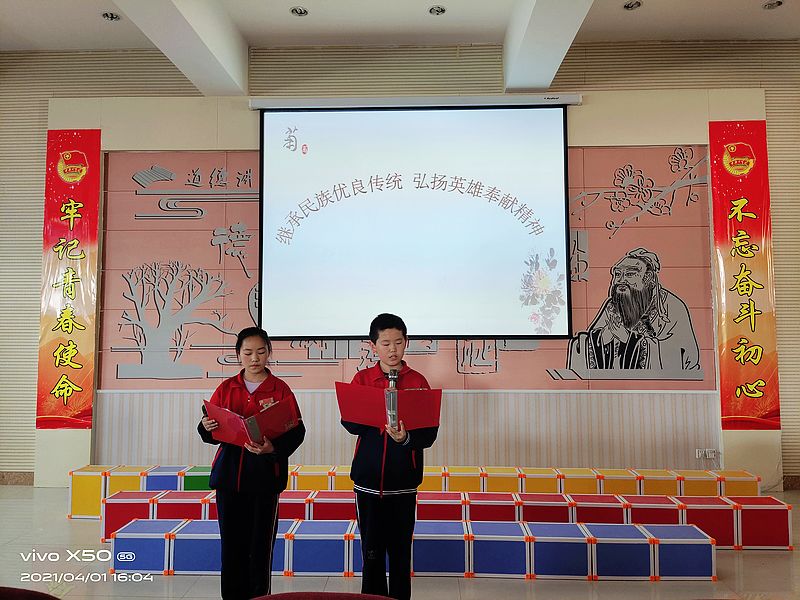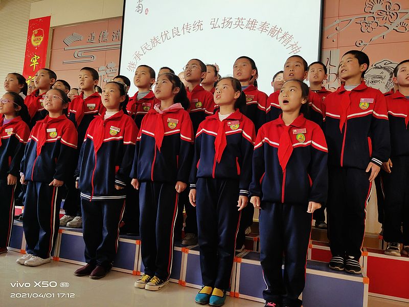 随后,孩子们用“吟红诗、唱红歌”的形式祭奠逝去的英烈们,在高亢激昂的吟唱声中,孩子们感受到了革命志士的高尚情操和英雄气概,增强了学生的民族自尊心和自豪感,激发了学生的强烈的爱国主义情怀。