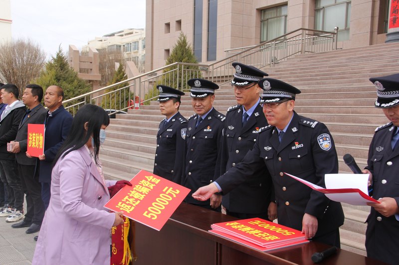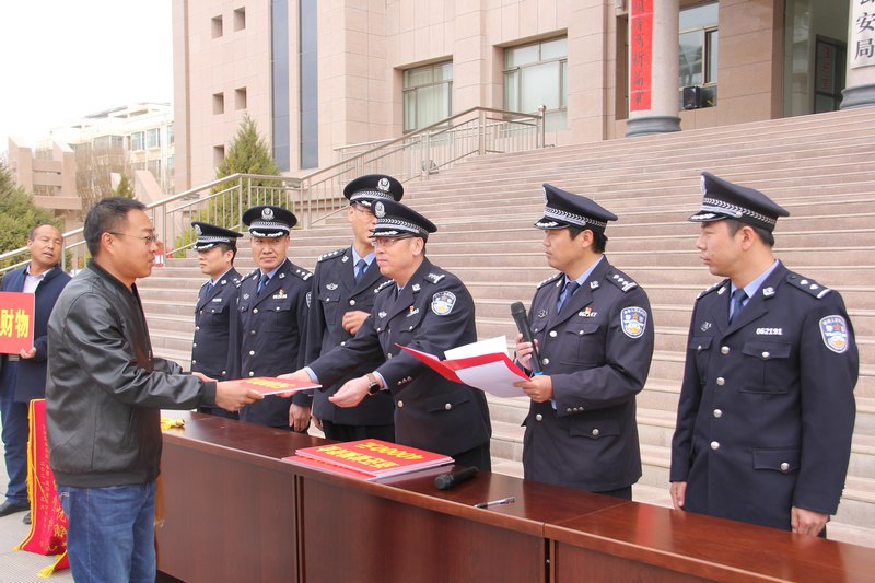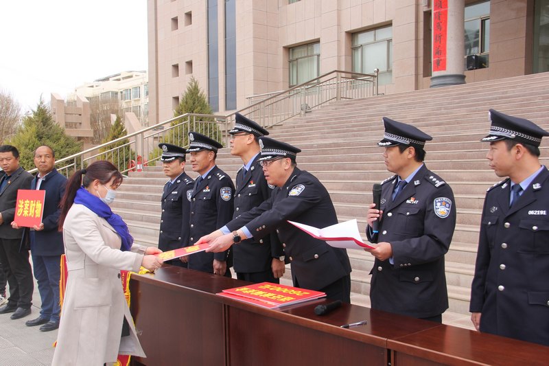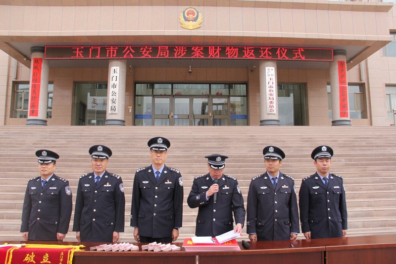近日,玉门市公安局隆重举行涉案财物返还仪式,现场向被盗被骗群众及企业代表返还皮卡车1辆、涉案资金49.25万余元,公安局党委委员、副局长马风林出席仪式并讲话,受损群众企业代表、社会各界人士及公安局相关部门负责人参加活动。