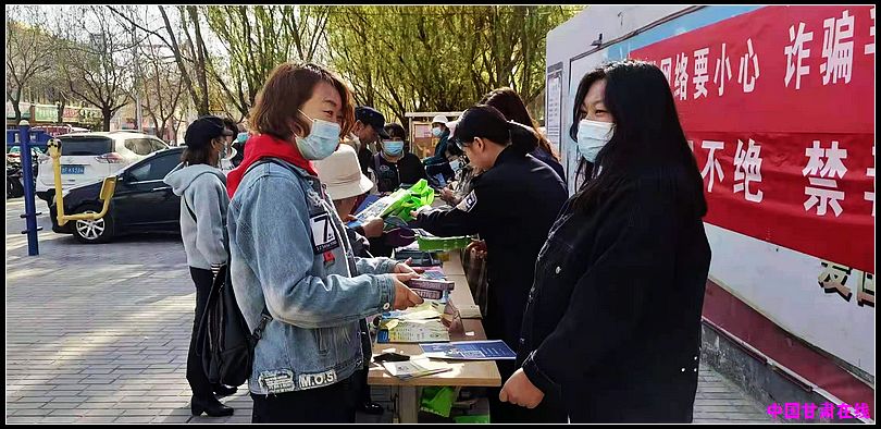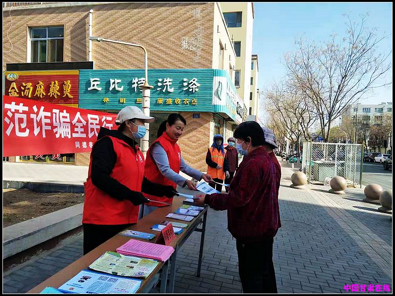 社区联合肃州区西北街司法所及西城关派出所在西环北路和常青巷共同开展“全民防电诈 全社会反电诈”为主题的宣传月活动。