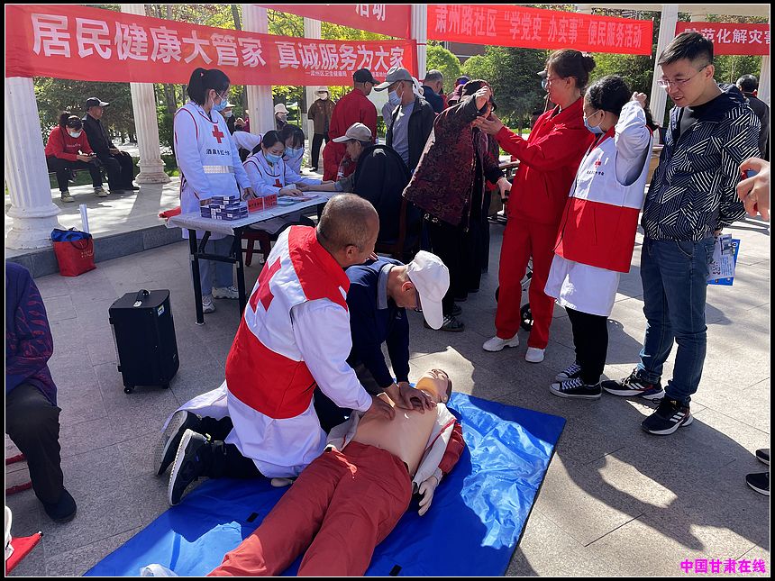 5月8日,肃州路社区牵手共驻共建单位酒泉市应急管理局,辖区单位宝石花物业公司、玉门油田社区医院、酒泉康复医院以及公益组织蓝天救援队、红十字协会、社会组织惠欣社工、公检法驻社区人员共同开展“学党史 办实事 志愿服务月月行”主题便民活动。
