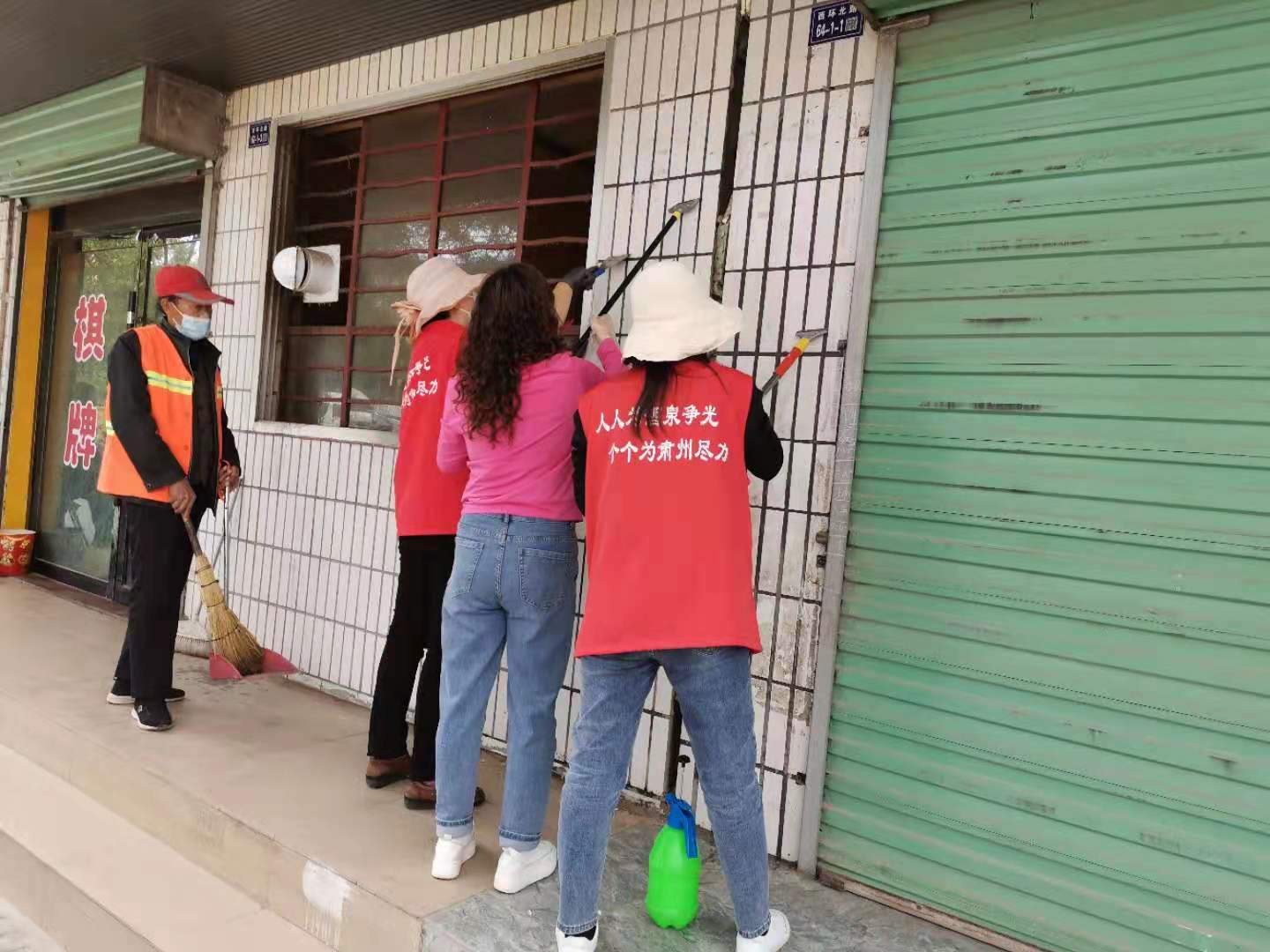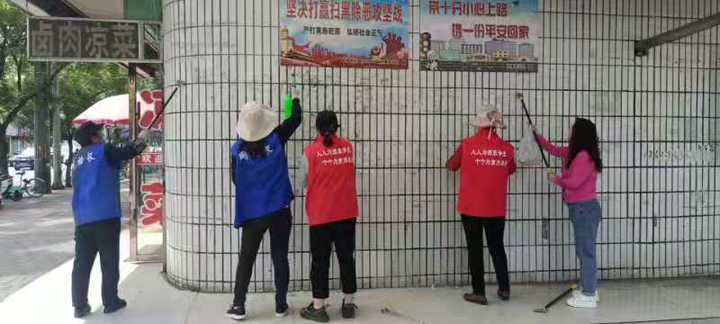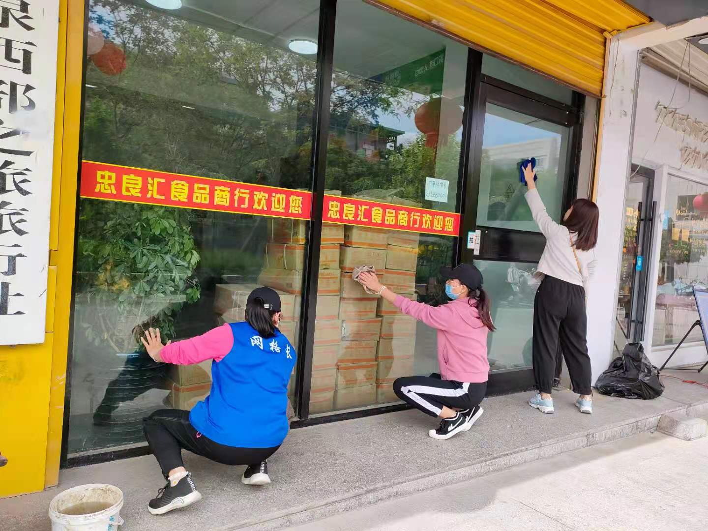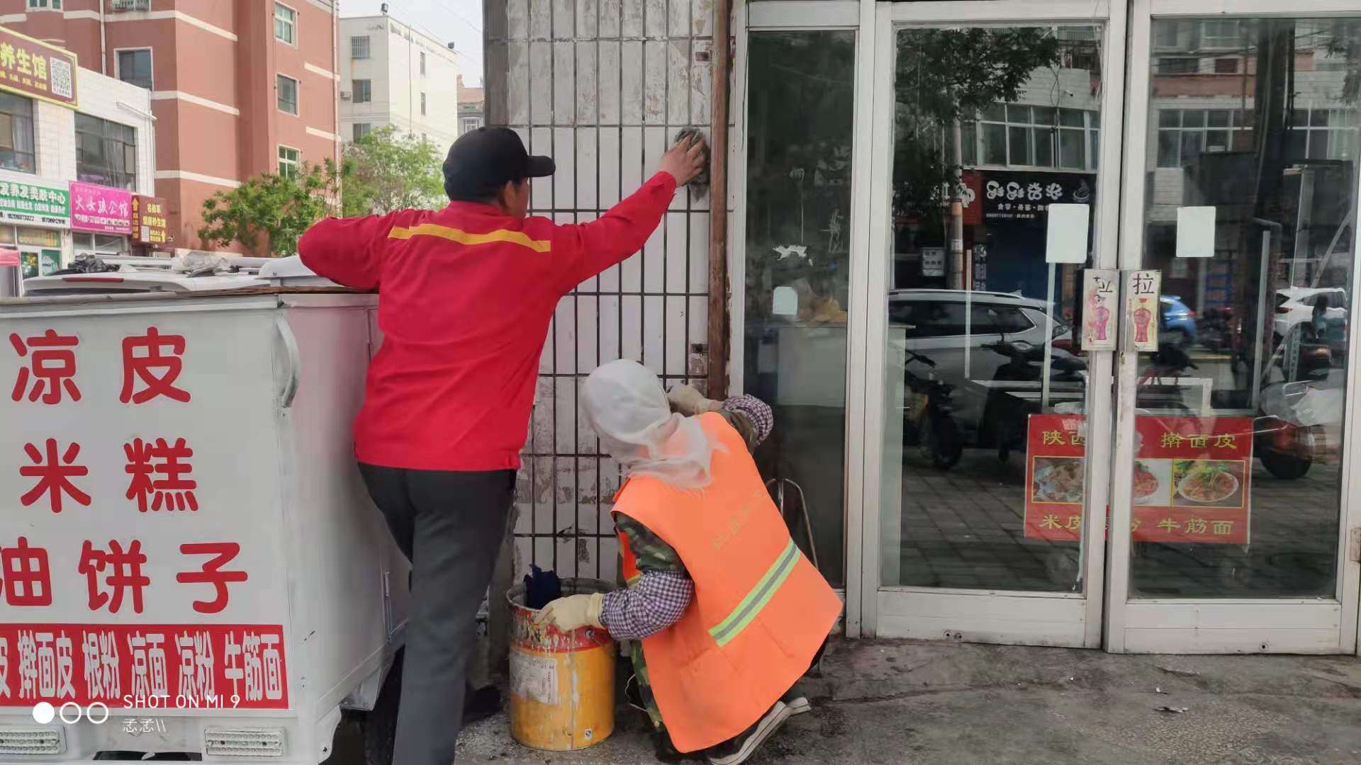 采取主要领导包抓网格形式,确保不漏一街一巷、一店一铺,对西峰寺5、6组沿街门店广告、牌匾进行擦、洗、铲,对辖区商户墙壁、台阶、卷闸门、门头牌冲洗、各类广告铲除;携手商户对门头牌、门前墙柱、门窗玻璃等卫生死角擦洗净化;对门前树沟内的垃圾杂物进行清扫,对辖区内小区进行清扫保洁。共擦洗门窗店420个,冲洗门店牌匾329个,铲除广告600余张,形成社区带头、商户参与的良好氛围。