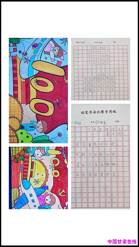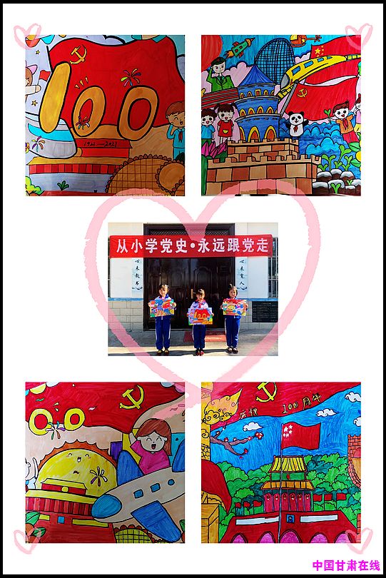 通过召开主题班队会,讲述革命的故事、长征故事、党的故事、中国精神、新时代爱国英雄故事,在鲜活故事中感悟党的初心使命,不断增进爱党之情。各班开展书法绘画评比活动,画面极具美感:党旗、党徽、国旗、队旗、天安门、长城、彩虹……通过精心设计,精美绘画,创作出一幅幅内容丰富、形式多样的绘画,抒发着 “从小听党话、永远跟党走”的美好情怀。激励学生颂党恩、跟党走,把自己的成长同祖国命运联系在一起,为做共产主义事业接班人不懈奋斗。