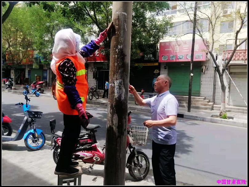 整治小组在南苑辖区开展拉网式排查,针对检查出的锈蚀、模糊、掉落、皱裂的电杆警示标识,社区工作人员自带清理工具,刮的刮、铲的铲,遇到粘的特别牢的小广告,用手一点一点将其撕离杆体,再用砂轮打磨。清理干净刷上反光漆后,再贴好防撞警示标志。此次整治共更换黑、黄相间防撞反光标85处,刷涂新油漆136处,固定拉线管19处。
