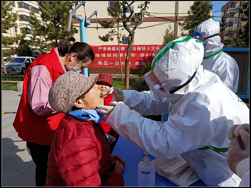 各检测点党员干部将为民办实事活动成效体现在全员核酸检测行动中,用心用情服务检测群众,面对不同群众的需求,他们在一天内要变身“广播员”、“排查员”、“引导员”、“心理咨询师”等角色,各检测点科学合理分配工作任务;利用小喇叭、居民微信群、张贴通告、打电话、入户等方式,确保通知人员到位;针对出行不便的老人、残疾人、居家隔离人员等特殊人员,医务人员上门采样,确保不漏一户、不漏一人,细致入微的服务,群众看在眼里,暖在心里。