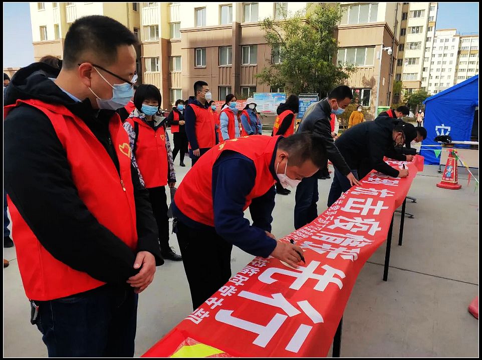 “我志愿加入中国共产党,拥护党的纲领, 遵守党的章程…… 。”在辖区各个核酸检测点,迎风飘动的党旗别样红,来自市区的300余名党员干部庄严列队,右手握拳,一字一字重温入党誓词,“战疫”一线的宣誓显得格外有分量,回响在脑中,激荡在心里,压实在肩上。随后,党员纷纷签下了疫情防控承诺书,按下了一个个鲜红的指头印,进一步坚定了打赢疫情防控阻击战的信心和决心。