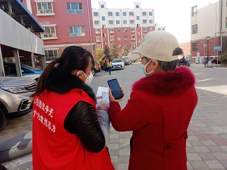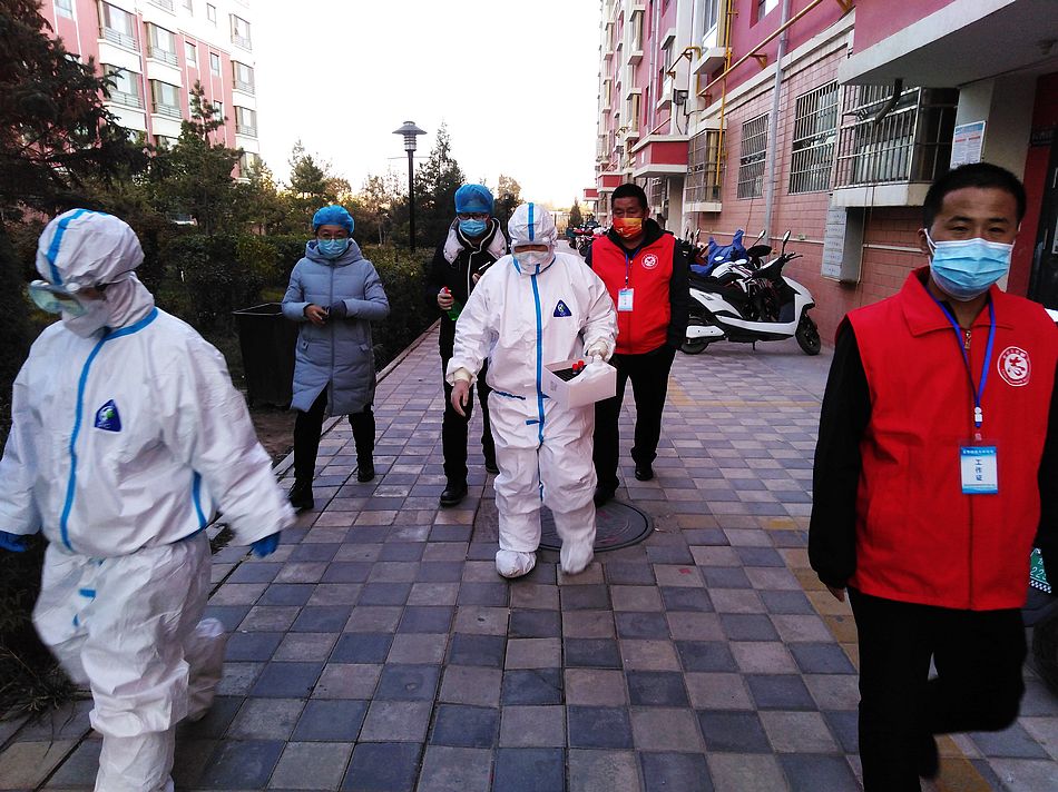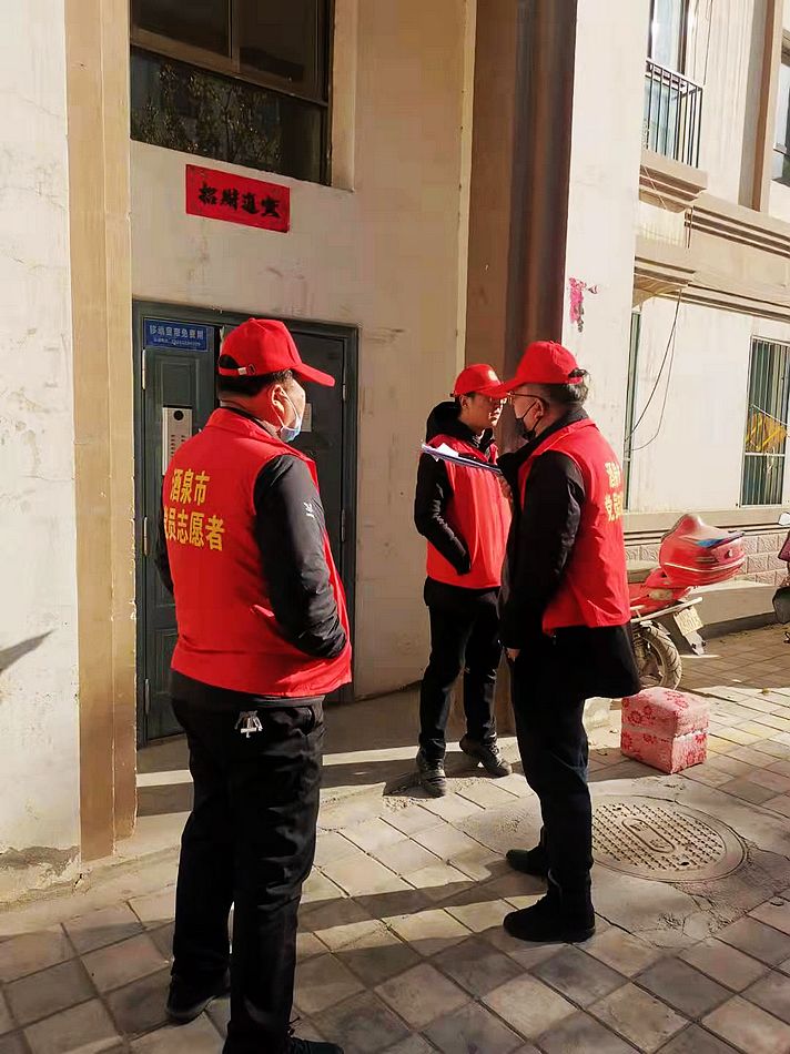 他们用足迹践行决胜信心,把信念驻在群众心间。祁连路社区所辖住宅楼110栋,366个单元,平房2处,1.2万居民,全民核酸采集点8个,随处都能看到身着绚丽中国红的志愿者们,他们每天穿梭在大街小巷、小区楼院、单元楼栋、各个采集点,手持扩音喇叭,行走在楼院里面,不是在宣传新冠肺炎健康科普小知识、倡议书,就是在劝导居民戴好口罩、勤洗手,减少外出,不要聚集;手持体温枪,驻守在小区门口,为出入居民测量体温,查验双码;手拿喷洒壶,穿梭在单元楼道,对重点区域进行消杀,不留死角;手提生活物资,奔波在小区住户,为居家隔离人员送去蔬菜、生活用品、药物;夜宿临时帐篷,不畏寒冷,严防死守,只为做好值班值守。他们从清晨到深夜,披星而来,戴月而归,用足迹践行着战胜疫情的决心,用行动传递着守护酒泉这方净土的信念。