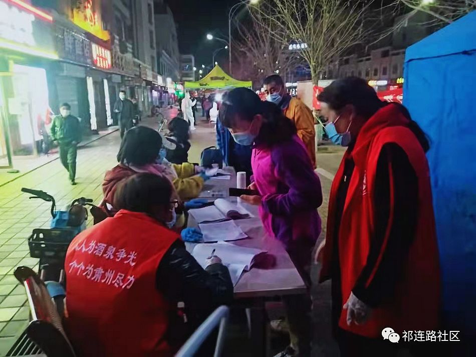 他们用臂膀扛起责任重担,把使命写在抗疫一线。此次疫情防控工作中,祁连路社区实行“网格化”精准模式,责任到网格,职责到人头。市区驻点下沉干部、社区党员干部、网格长、物业公司、个体商户......,他们化身坚强果敢的战“疫”志愿者,以疲弱的身躯,扛起了如山的责任,以大爱的担当,凝聚起磅礴的力量。他们同心协力,坚决服从社区统一安排,听从指挥调度,模范冲锋在前,用温暖的坚守,在社区的每个角落协助区域管控、核酸检测、扫码登记,落实人员疏导、秩序维护、卫生消杀等各项防控措施,劝导居民群众服从防控要求及做好疫情防控宣传等工作,以责任担当之勇,科学防控之智,关怀百姓之爱,身先士卒之范,合力织成疫情防控大网络,把初心使命书写在抗疫一线,筑起了抗疫的安全屏障。