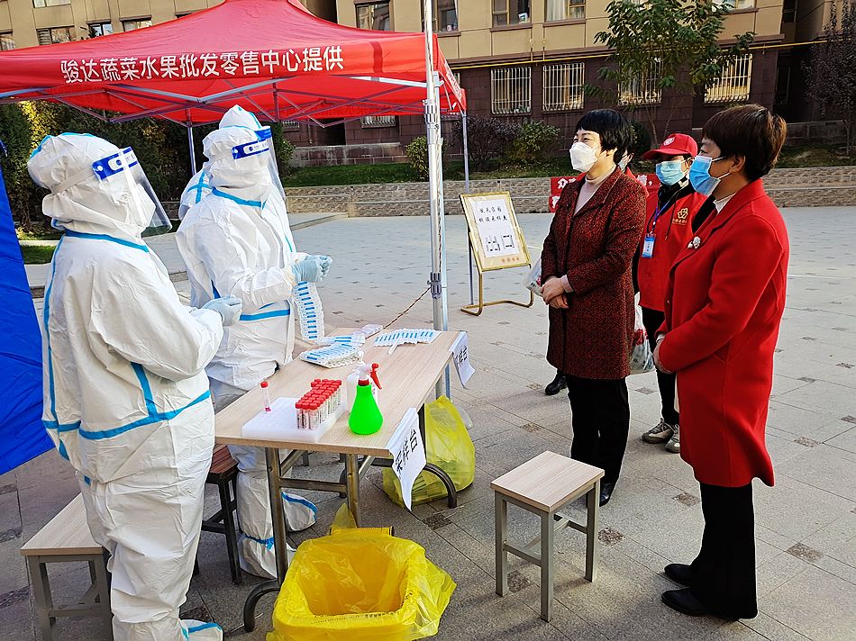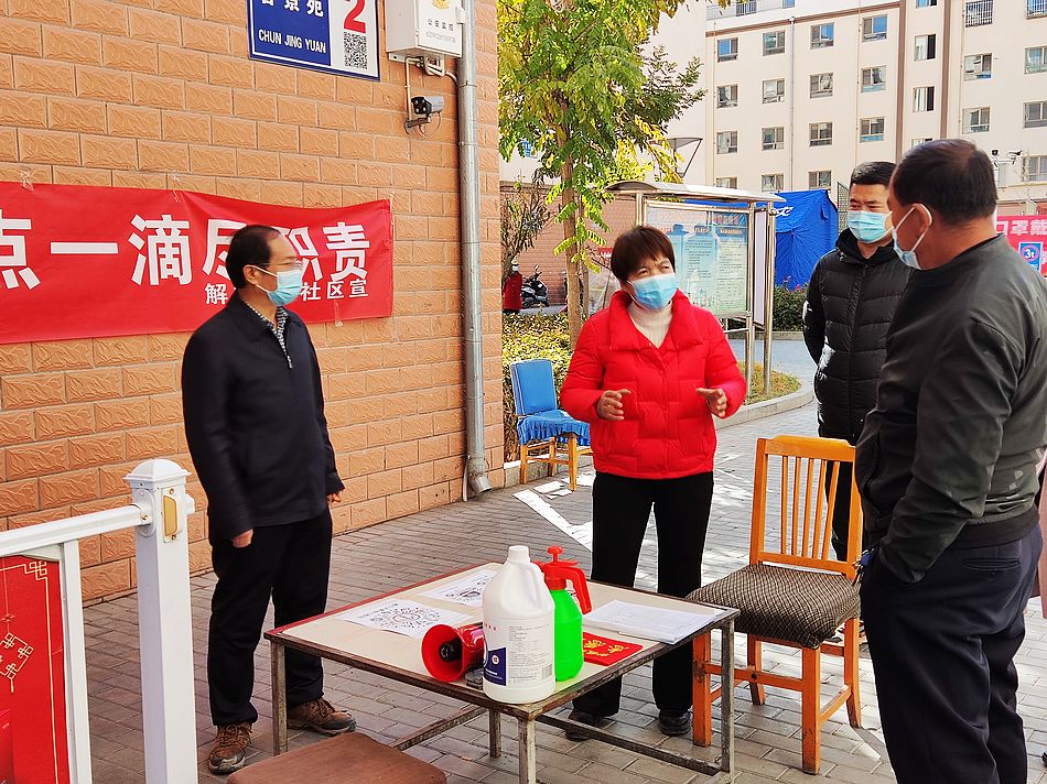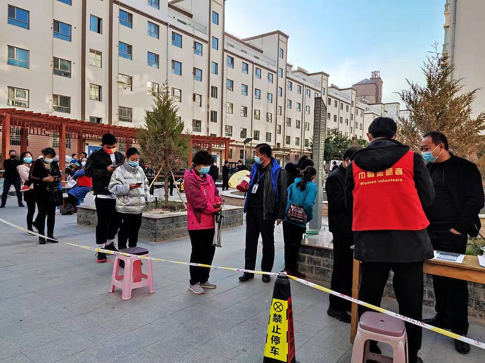 根据省、市、区防疫工作的统一安排部署,10月22日,茹艳炜书记第一时间召集全体干部职工和物业公司管理人员召开了疫情防控工作部署会议,传达了上级有关疫情防控的最新要求,安排部署社区疫情防控工作,并安排各网格督促物业公司对小区内部进行全面的消杀。连夜召开全民核酸检测安排部署会议,明确疫情防控各工作组任务职责,落实检测点人员物资安排等工作,协调物资保障,分配工作人员安装1米栏、布置隔离带、张贴一米线、设置检测点位,通过线上线下平台发布检测须知等,确保核酸检测采样工作顺利开展。