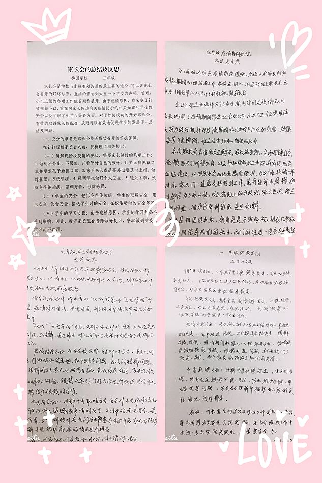 会后,各班主任认真写了反思和总结,以便更好更细的完成接下来的班级管理和教学,同时家长会也增进了家长与学校的沟通与交流,同时让班主任们更加明确今后管理班级的方向和方法。