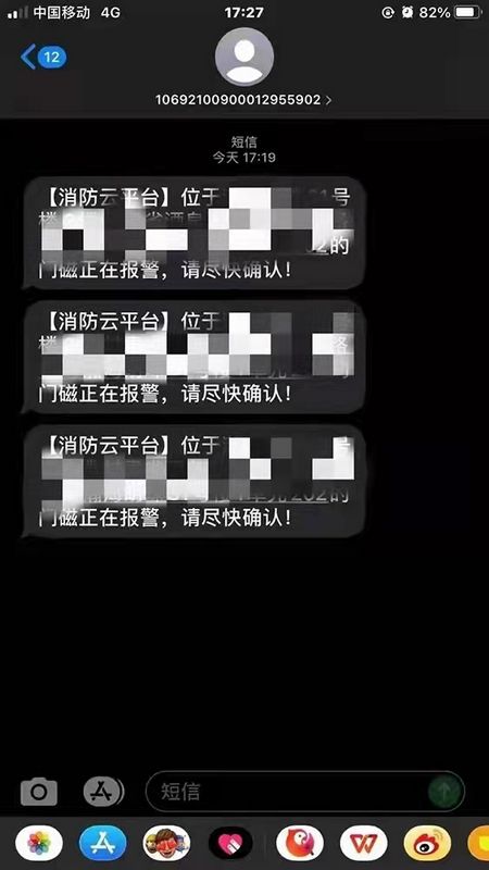 “滴、滴、滴……”11月12日下午,金泉路社区网格长薛萌的手机提示音响起,收到了一条“第四网格,X点X时,XX小区第31栋202隔离用户房门打开,请立即处理。”的告警信息。此时,网格长正配合电信公司的工作人员在为居家健康监测人员安装防疫智能门磁系统,刚刚的短信正是在安装完门磁后,打开隔离人员大门后收到的警示信息。