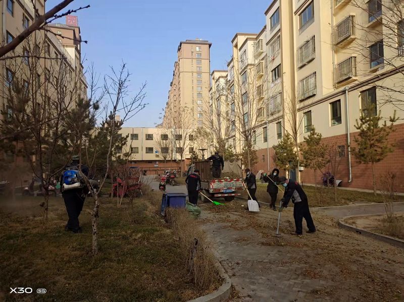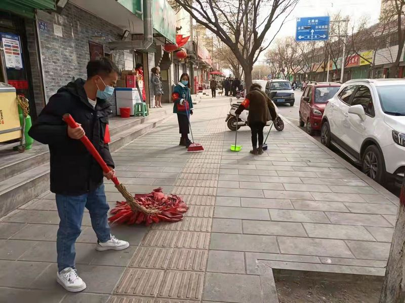 秋冬季节受天气影响,辖区部分区域落叶和积冰仍有残留,“轻垃圾”随风乱舞的现象也较多,为了彻底清理顽疾,东南街街道组织所辖社区全体保洁员、社区干部、共建单位党员干部、志愿者重点对树穴、绿化带、绿地及道路两侧的枯枝杂草、残败花叶等彻底清理,对责任路段沿线的卫生死角、城市家具污垢进行了全面清扫擦拭。做好“清叶除冰”的同时,身穿红马甲的志愿者还对停放车辆处的积雪、污垢一一清理,在他们的带动下,越来越多的居民不做看客,纷纷拿起手中的工具对楼院小区的卫生死角、乱堆乱放彻底进行整治,一个个忙碌的身影为这寒冷的冬季增添了温暖的色彩,使人居环境实现再提升、再美化。