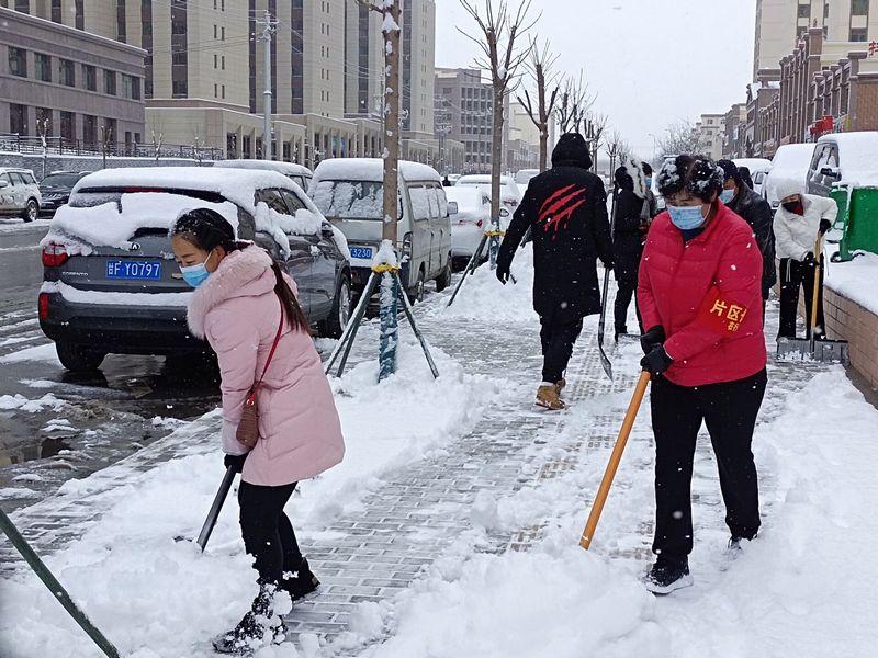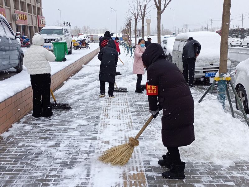一场积雪一份责任,彰显着社区领导干部、清扫员和志愿者以人为本,情系社区为民的宗旨,彰显着片区长工作人员、街长制单位心系群众的情怀,为进一步靓化我们的城市尽一份应有的责任。