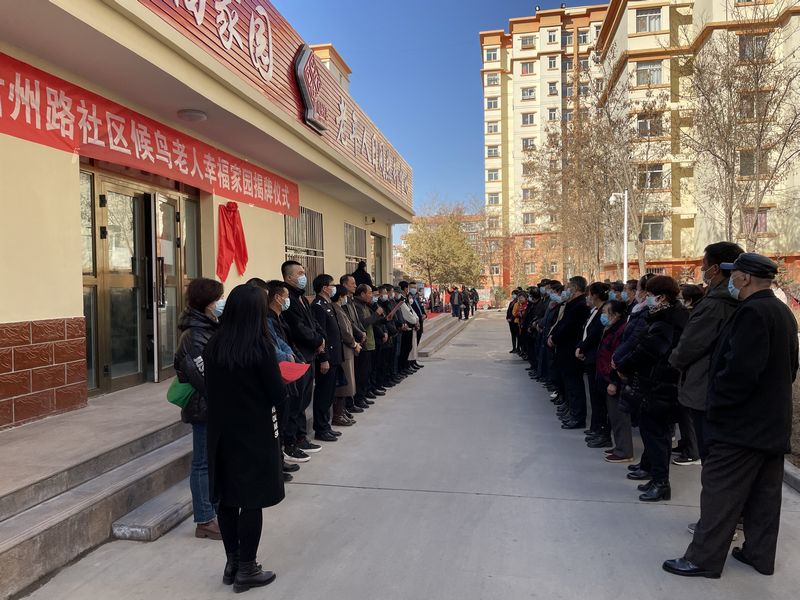 近年来,伴随着人口老龄化程度的不断加剧,养老问题成了社会关注的焦点,也成了基层社会治理工作的重点、难点,西南街街道肃州路社区立足辖区实际情况,深入践行“服务就是最好的治理”理念,在裕和园日间照料中心举行了隆重的候鸟老人幸福家园揭牌仪式,酒泉市慈善协会、肃州区民政局以及在项目建设进行爱心捐赠的共建单位、辖区单位、甘肃省泽瑞亿通建设工程有限公司、辖区物业公司等楼院支部书记、党员、辖区广大居民群众共计100余人。